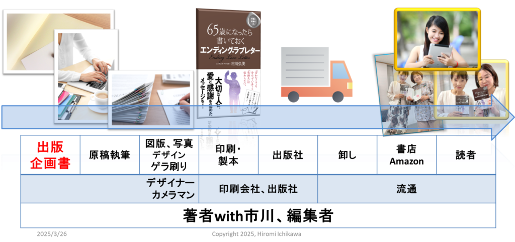 下図に大まかにまとめました。一番左の出版企画書が入り口です。
